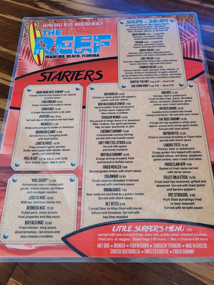 Welcome to The Reef Bar and Grill, a vibrant dining spot located at 14705 Gulf Blvd, Madeira Beach, FL. This divey yet casual eatery perfectly captures the beach atmosphere, making it a favorite for locals and tourists alike.